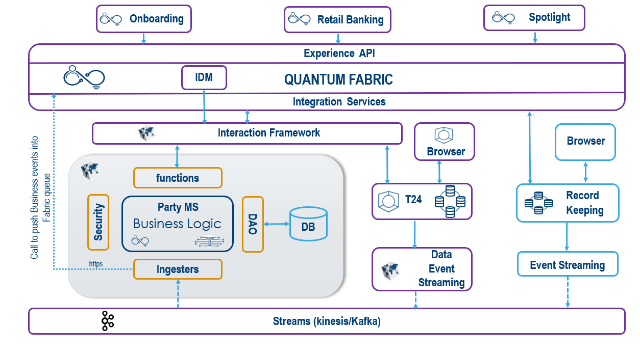 Party Microservices provides an independent cloud-enabled solution for managing party information that is required for both the front office (Temenos Digital) and back office (could be Transact or any other back-office system of the bank).