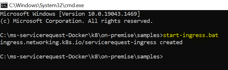 - Navigate to K8 (Helm images) package from the samples folder and execute start-ingress.bat/start-ingress.sh to start the ingress services