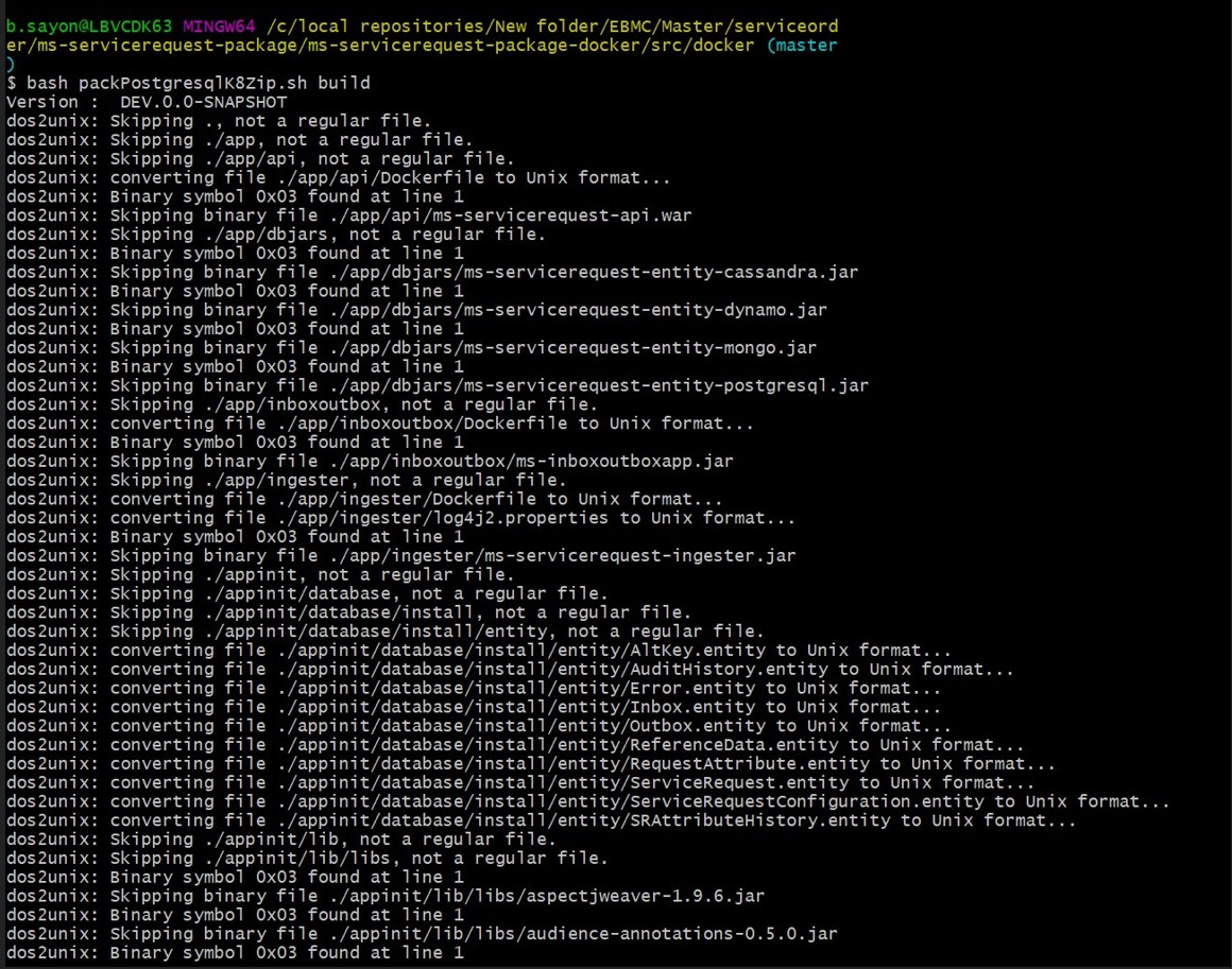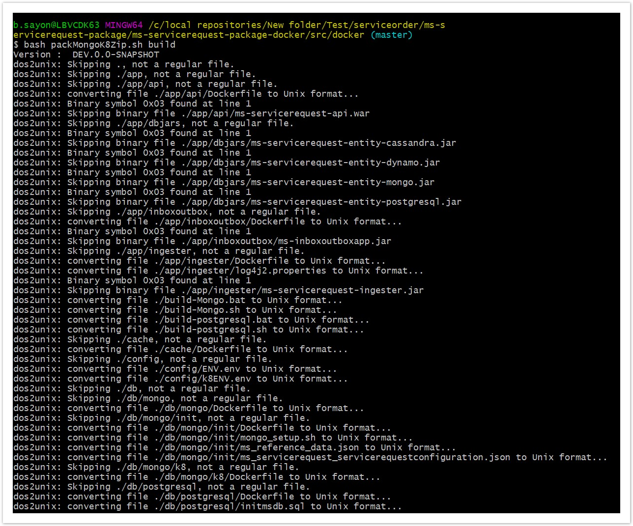 - Start the packMongoK8Zip.sh file which in turns builds the docker images and generates the servicerequest-helm-pack-mongo-<release_number>.zip file