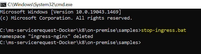 To undeploy the ingress, navigate to K8 (Helm images) package and then execute the stop-ingress.bat/stop-ingress.sh to stop the service.
