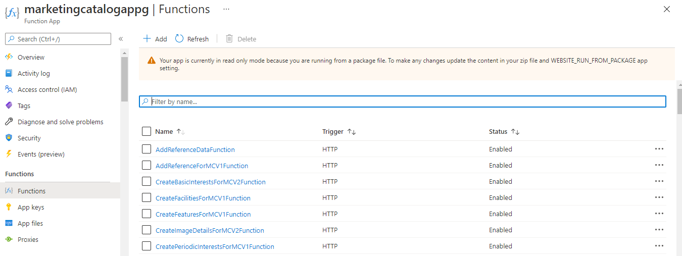 3. All the files need to be placed under folder path “ms-marketingcatalog-azure\target\azure-functions\<app folder>”.