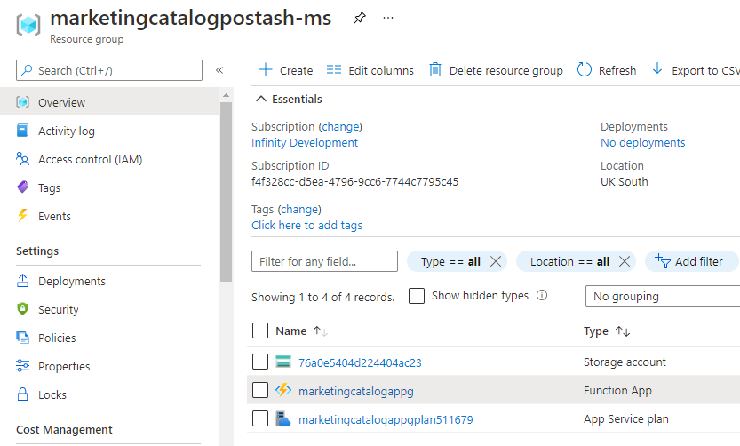 2. Login into the Azure portal and check whether the Resource Group and Function app is created.