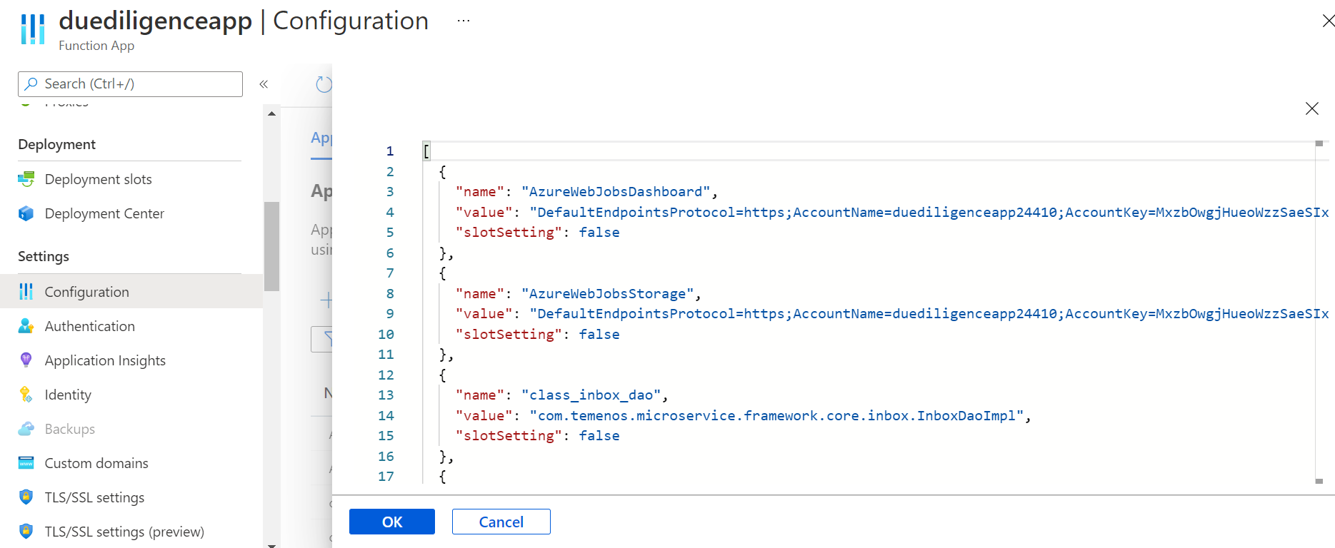 Function app for api created in azure, if App name is changed, then rename the folder in this path: ms-duediligence-package-azure-<version>\ms-duediligence-azure\target\azure-functions