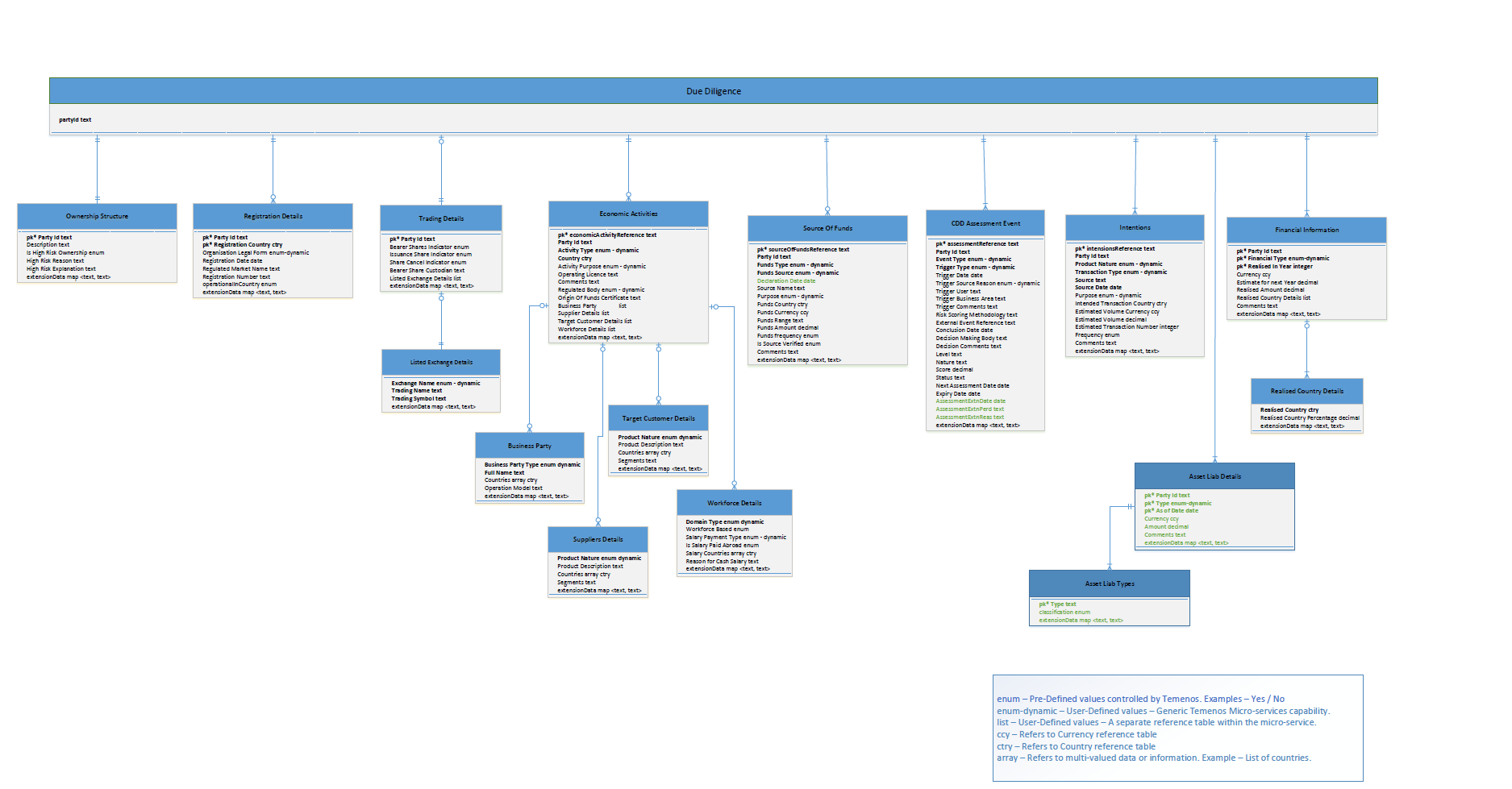 To view the NoSQL data model of the Due Diligence Microservice and different associated entities, click here.