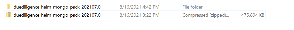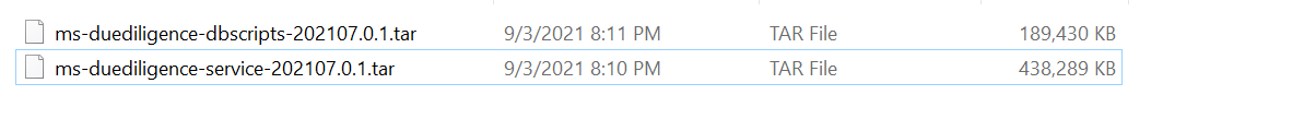 1. Due Diligence Microservices for K8 deployment is available as single release bundle duediligence-helm-mongo-pack-<release_number>.zip to load the docker images and then deploy the service in Kubernetes cluster for MongoDB. Unzip the duediligence-helm-mongo-pack file, which contains the required images as the tar file.