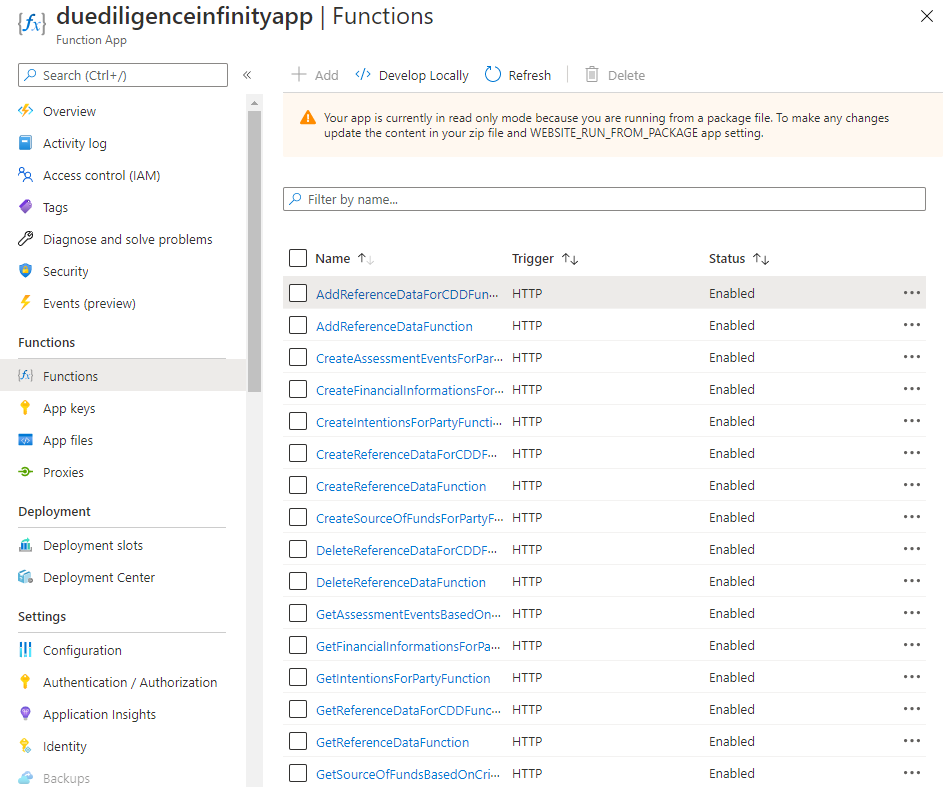 • Place all the files under ms-duediligence-azure\target\azure-functions\<app folder> path.