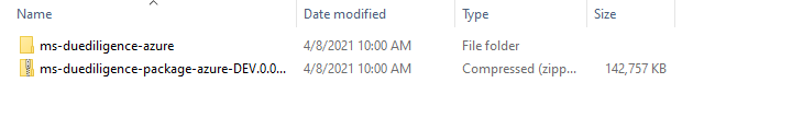 The folder structure of the zip fileis ms-duediligence-package-azure-mongo<release_number>.zip.