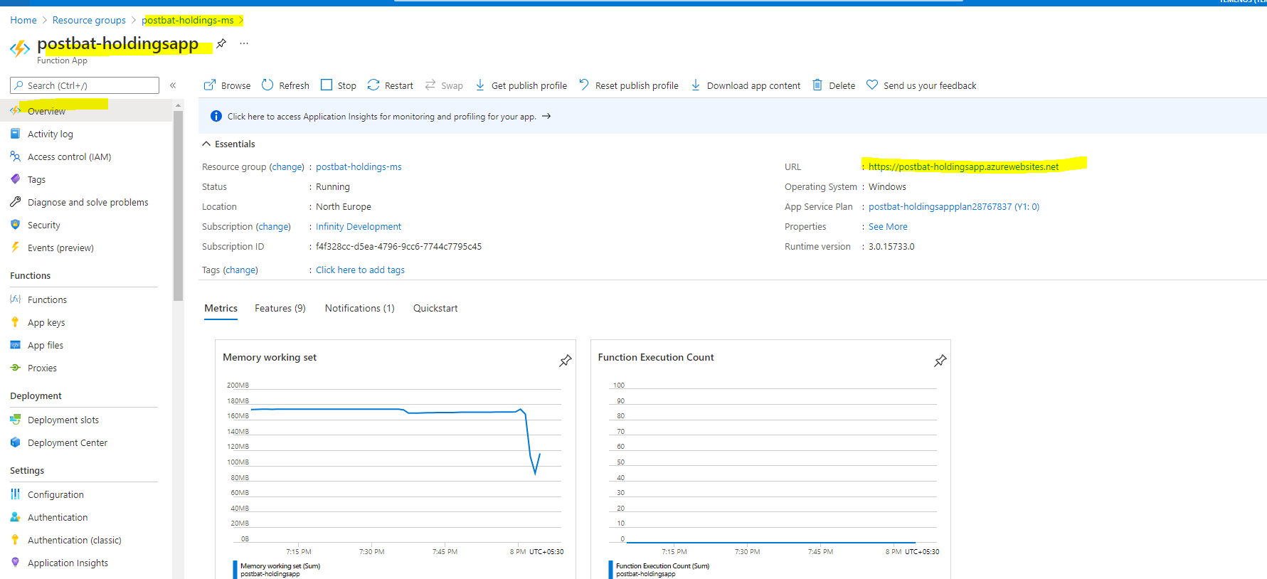 - Login to Azure portal and check if resourcegroup and functionsapps is properly created.