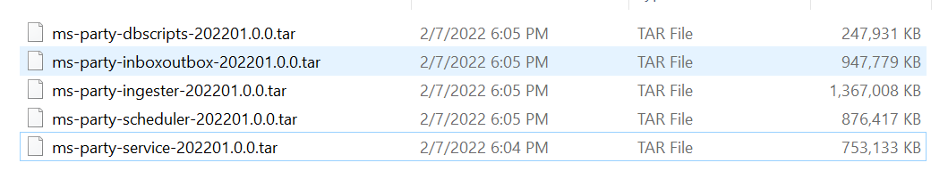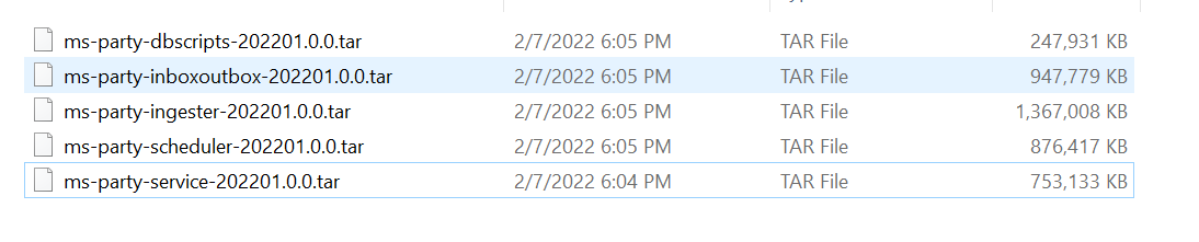 The Party Microservice for K8 deployment is available as a single release bundle. For example, ms-party-package-docker-<release_number>.zip.