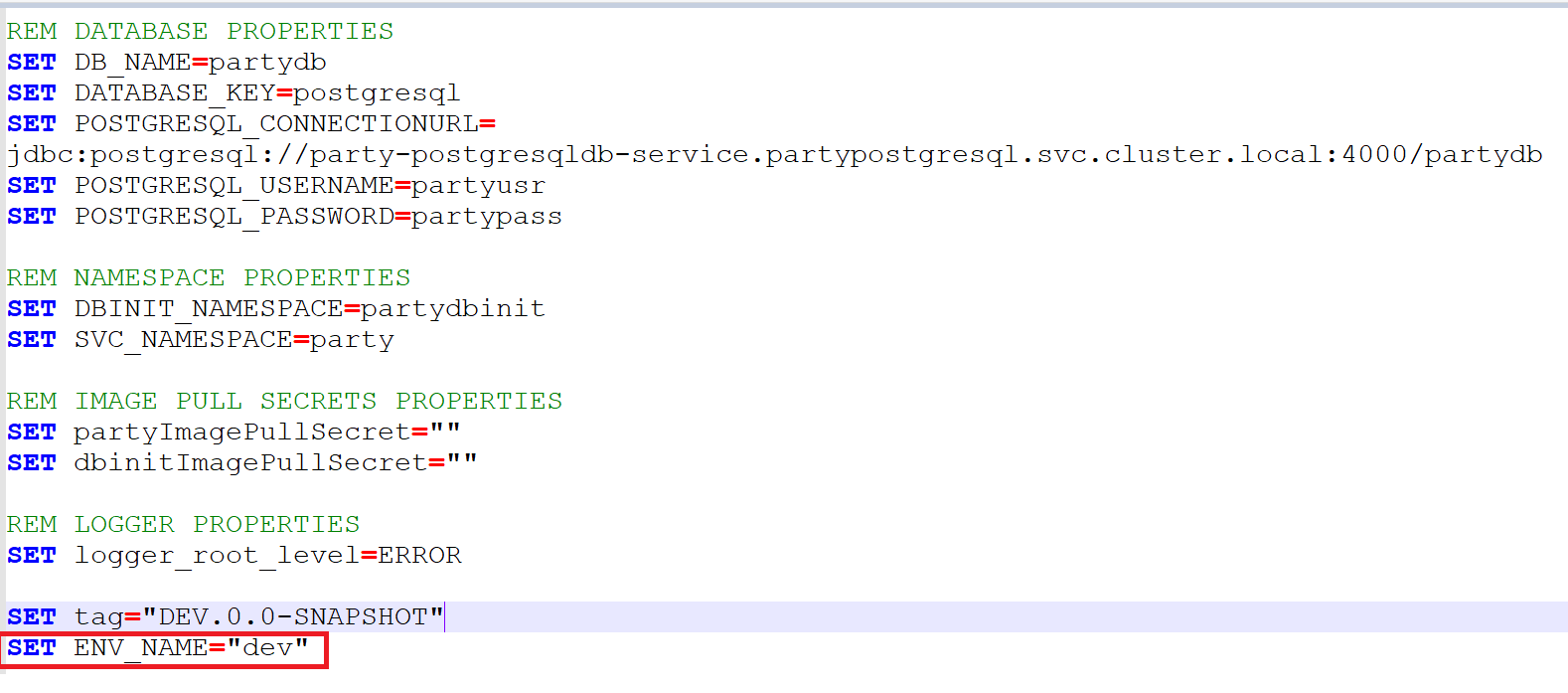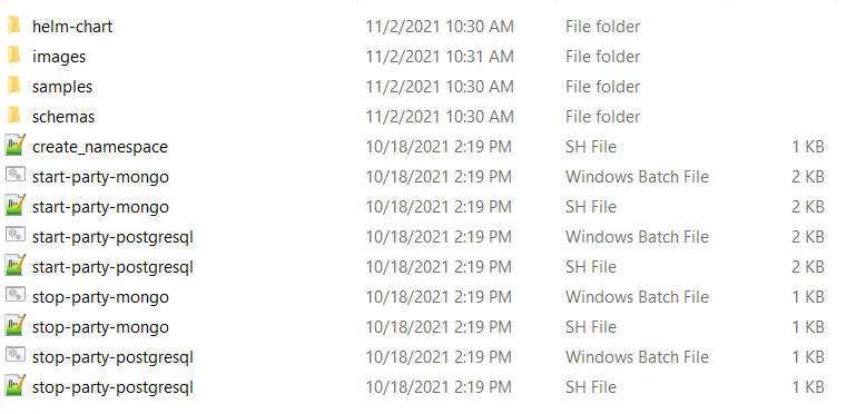 9. Once all the configurations are done, start the Microservice by navigating to the folder where the .bat and .sh files are available. Under the party-helm-postgresql-pack folder and run below code.