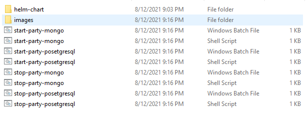 5. Once the images are loaded in to the K8, start the mongo scripts by navigating to the party-helm-mongo-pack folder where the bat and sh files are available.