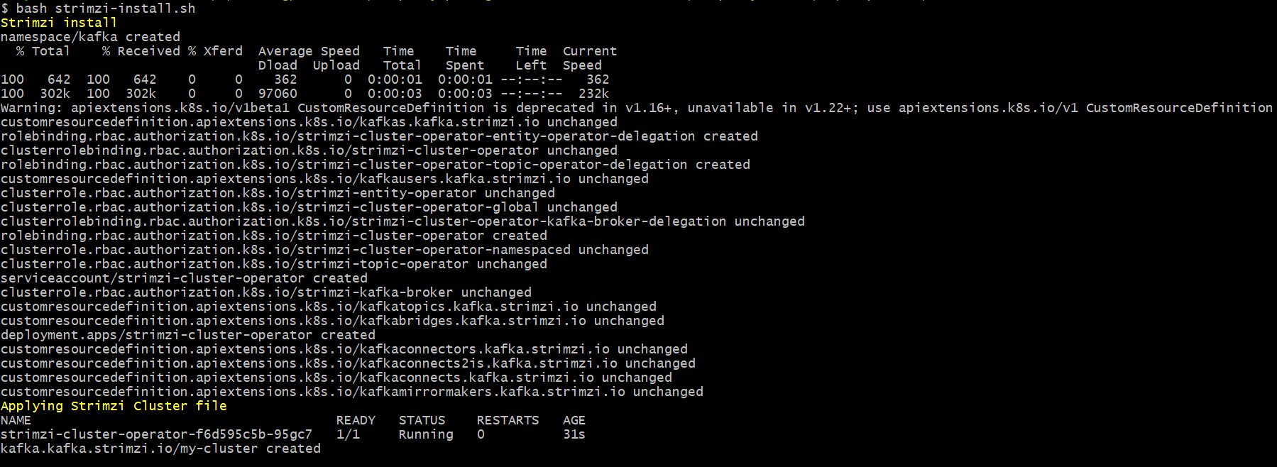 If Strimzi is not installed in the machine, go to the Streams folder and run ./strimzi-install.sh.Repeat this step if the Kubernetes cluster resets.