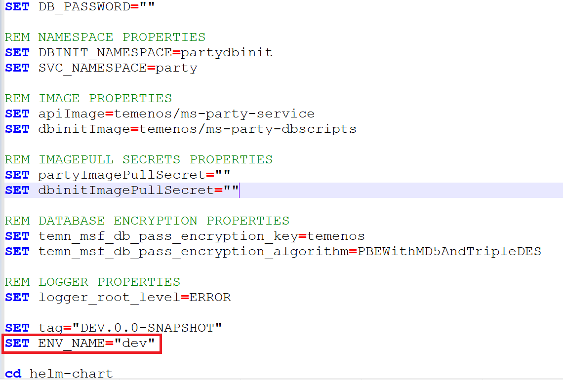 8. Once all the configurations are done, start the Microservice by navigating to the folder where the .bat and .sh files are available. Under the party-helm-pack-mongo folder and run below code