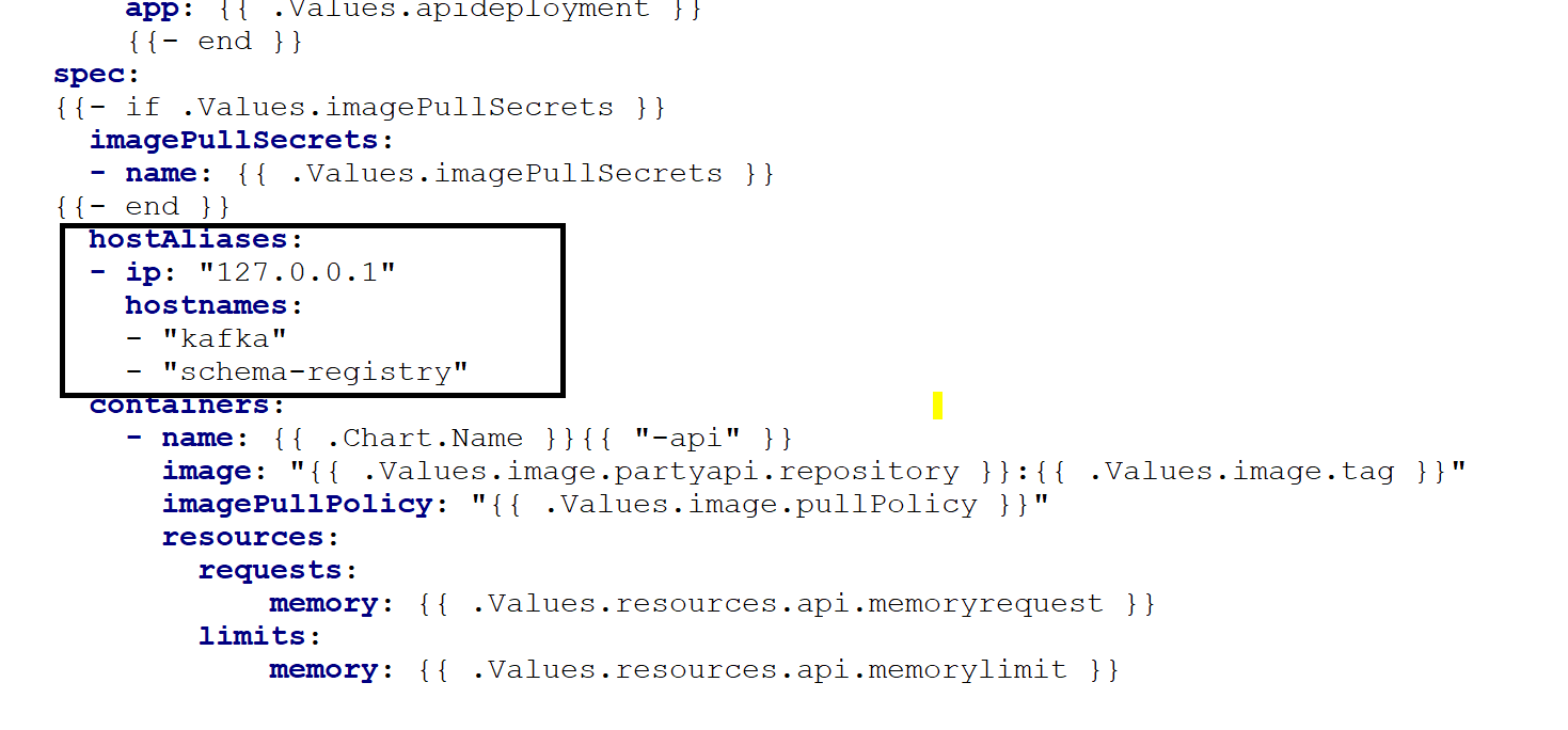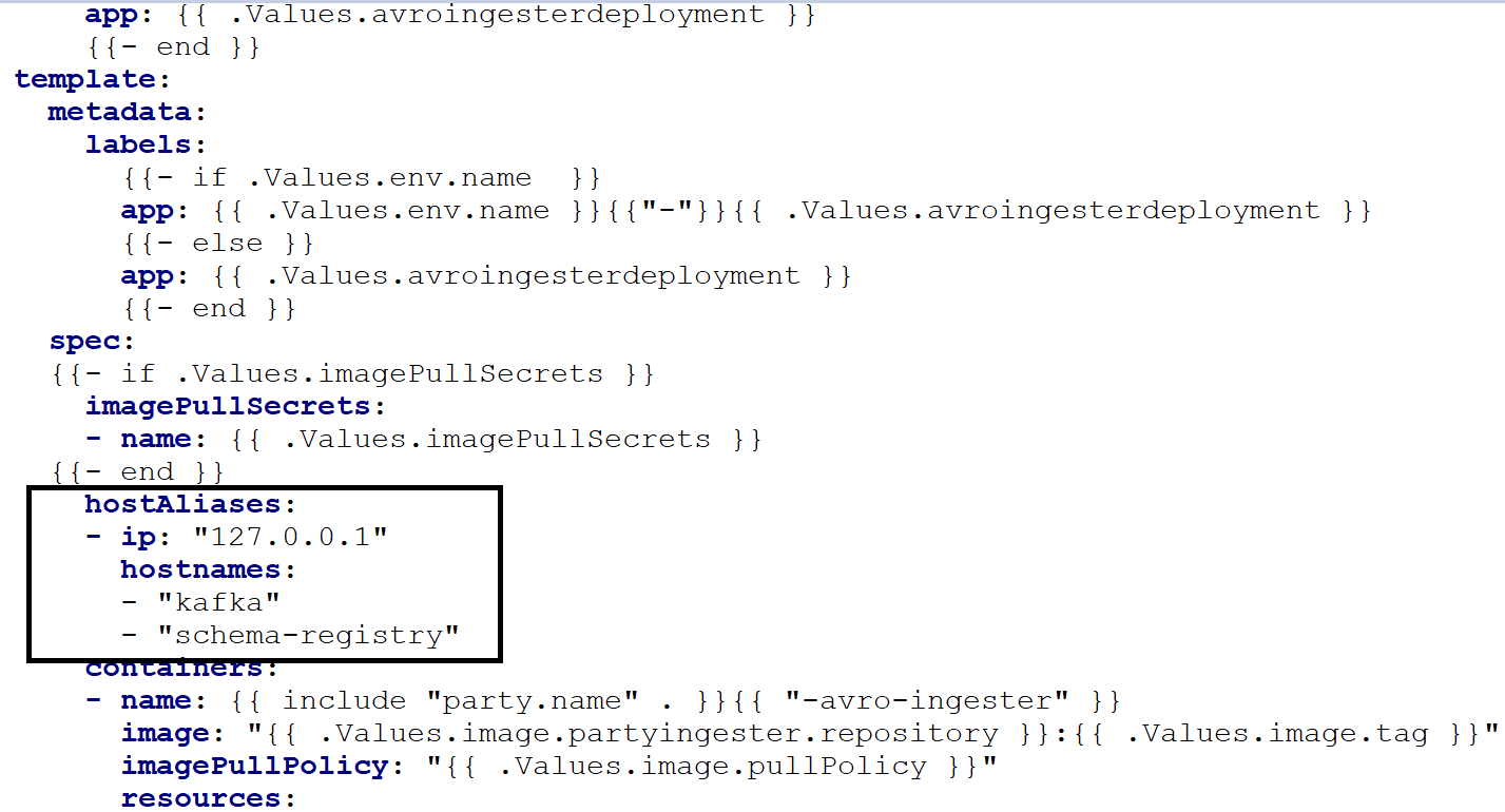 12. If DES and Party are running in different machine, update hostAliases with DES IP for Kafka and Schema registry in party-api.yml and party-ingester.yml