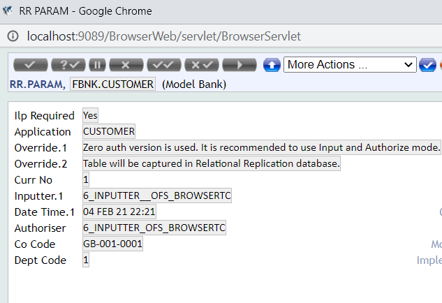 1. Create a record in the RR.PARAM application for FXXX.CUSTOMER, FXXX.CUSTOMER.GROUP, FXXX.CUSTOMER.REL.GROUP, and FXXX.PARTY.RELATIONSHIP applications with ILP.REQUIRED set to YES.