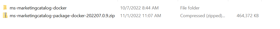 - Unzip the ms-marketingcatalog-package-docker-<release_number>.zip