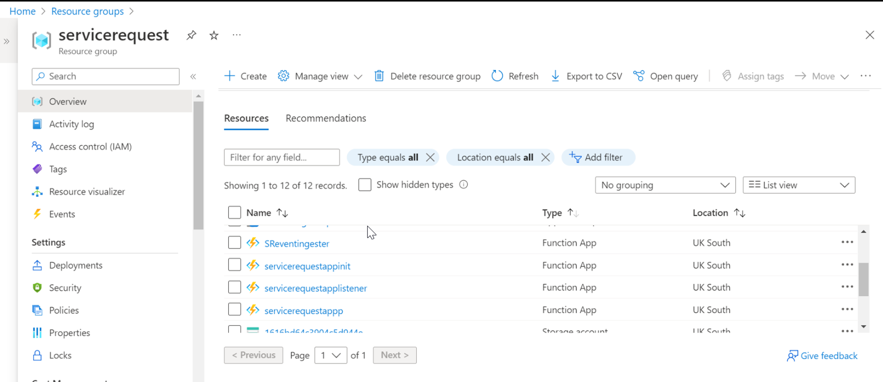- Log in to the Azure portal and check whether the resource group and function apps are created.